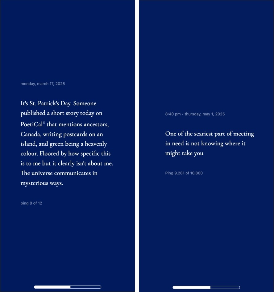 I (Joanne) am finding the format to be quite intimate: Pings are afforded the space to resonate with one another, and our innermost expressions are exhibited with care.3
